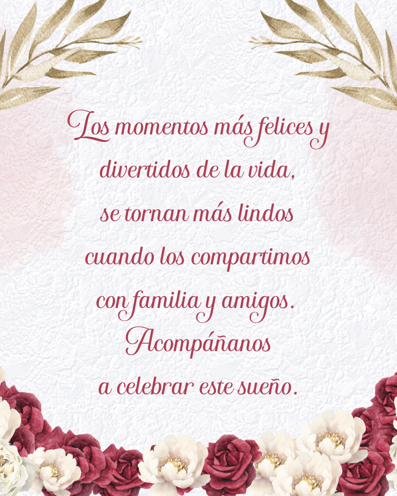 La música es parte de la experiencia, dale play... Falta 00Dias 00Hs 00Min 00Seg Festejo Av. Nestor kirchner Colorado Fsa. Cómo llegar aquí ¿Venís? Por favor Avísanos si vendrás a nuestro festejo Confirmar a Any Confirmar a Wilson Recuerda traer tus Cubiertos y Bebidas Álbum de fotos Momentos únicos Tu presencia es lo que importa Pero si quieres darnos algún regalo puedes hacerlo por este medio Datos aquí En el salón también habrá una mesa con urna Comparte tus momentos de nuestra fiesta Etiquetanos en nuestro mural usando este hashtag #anyywilson Instagram aquí
